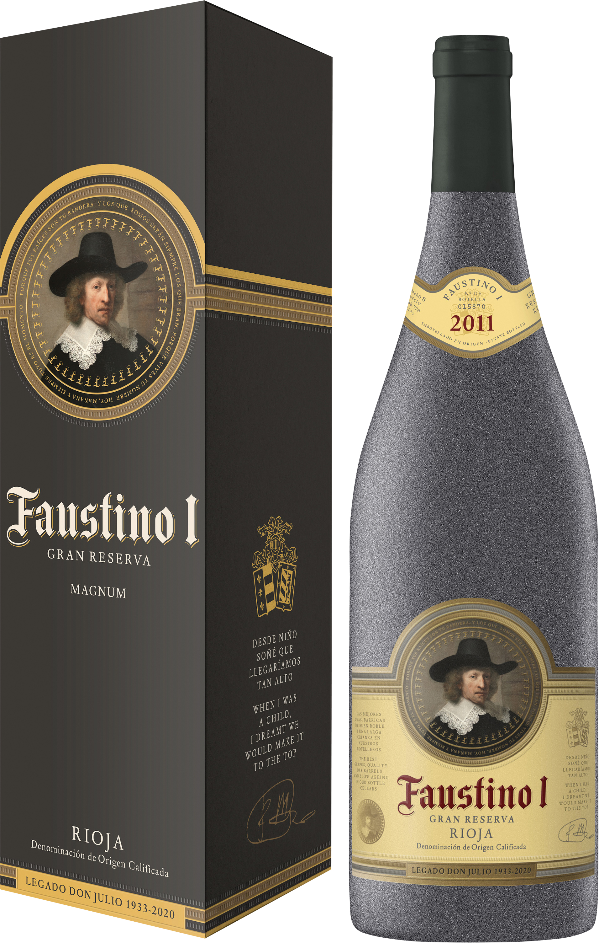 1960 stellte Julio Faustino alle Schalter auf Erfolg. Sein Faustino I wurde zur Ikone und ist der meistverkaufte Rioja Gran Reserva der Welt. Eine zeitlose Verschmelzung seiner Böden und Trauben in Oyón, seiner Reife und Geschichte.