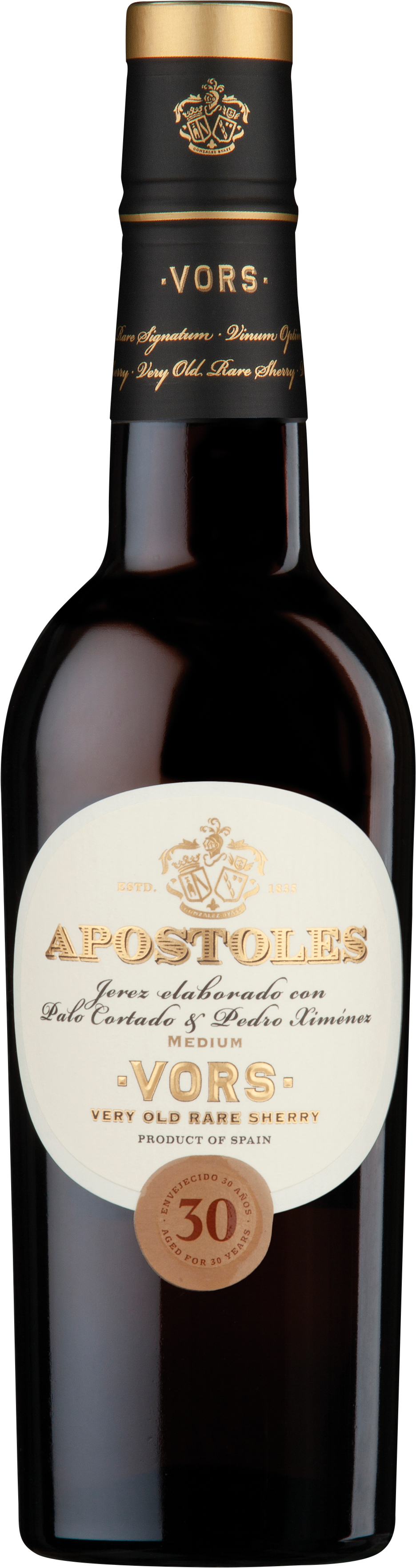 Der Apostoles Palo Cortado GP Gonzalez Byass zeigt sich als V.O.R.S. 30 Anos Sherry aus Jerez-Xeres-Sherry. Mit einem beeindruckenden Anteil von 87% Palo Cortado entfaltet dieser Wein Aromen von Nüssen, Gewürzen und Trockenfrüchten. Die Reifung in amerikanischen Eichenholzfässern über drei Jahrzehnte verleiht ihm eine tiefgründige Komplexität. Die Apostoles-Solera, ins Leben gerufen in Ehren von Königin Isabel II., spiegelt die Leidenschaft der Bodega González Byass wider.