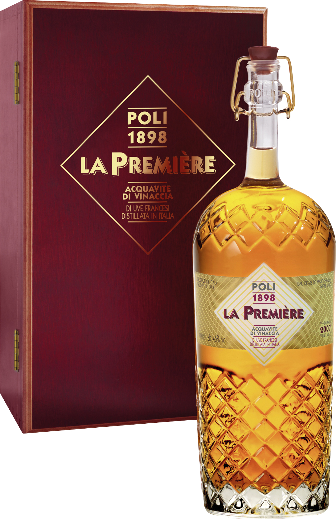 12 Jahre hatte Poli an die Schlosstore geklopft, bis er 2007 seinen Trester bekam. Den brachte er schleunigst in die heimischen Brennkessel, ließ das kostbare Destillat 8 Jahre im Barrique reifen, bestimmte dann in einem langen Auswahlverfahren die Cuvée und konnte endlich, im Juni 2016 den ersten Poli La Première abfüllen.