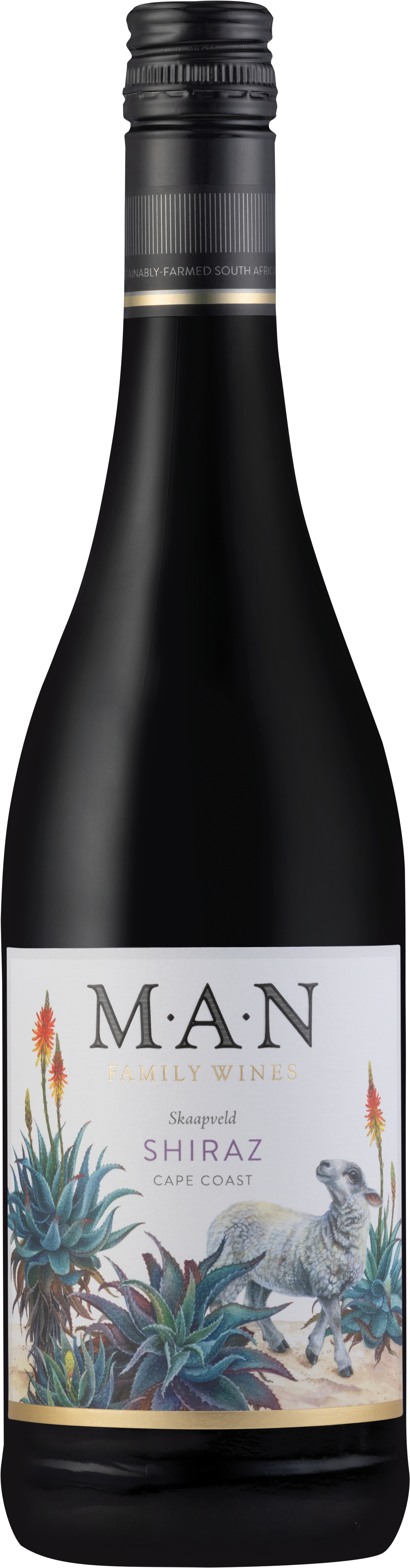"Skaapveld steht für die Weideflächen der Schafe, welche zahlreiche Shiraz- Weinberge der Region umgeben. Er zeigt im Glas eine tief weinrote Farbe und ein komplexes, aromatisches Bouquet von schwarzen Johannisbeeren und Pflaumen. Durch eine 12-monatige Reifung in amerikanischen Eichenfässern sind die Tannine fein und wohl integriert im Abgang.