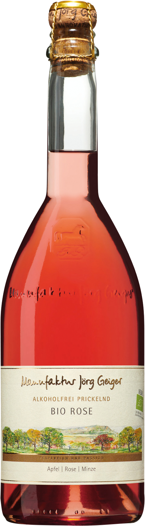 Der Rosé alkoholfrei von der Manufaktur Jörg Geiger verführt mit einem feinen Rosenduft, begleitet von Himbeere, Schokominze und würzig orientalischen Noten. Mit jedem Moment entfalten sich im Bukett facettenreich weitere Düfte. Am Gaumen beginnt er mit einem süßlichen Auftakt der Himbeere, gefolgt von der erfrischenden Säure des Boskoop Apfels. Das Mittelstück ist würzig, und der Geschmack endet in einem langen Nachhall.