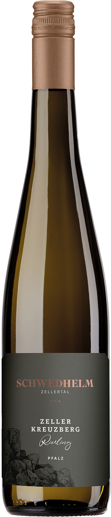 Die Lage Zeller Kreuzberg liegt auf rund 240 Metern Höhe direkt am Dorfrand und ist mit bis zu 27 % Hangneigung konsequent nach Süden ausgerichtet, was optimale Reifebedingungen schafft. Die Böden aus Kalkstein und tonigem Lehm verleihen dem Wein eine karge, präzise Mineralität und klare Struktur. Nach einer Vorselektion wurden die vollreifen Trauben von Hand gelesen, acht Stunden auf der Maische belassen und im Edelstahltank zunächst spontan und gekühlt vergoren; zum Ende hin wurde Reinzuchthefe eingesetzt, um die Gärung bis auf ein Minimum an Restzucker durchzuführen, bevor der Wein bis Ende Mai auf der Hefe reifte. Im Glas zeigt der Riesling eine kristallklare Mineralik, eine zupackende, exakt definierte Säure sowie feine Noten von Steinobst und Zitrus – ein klassischer, ausdrucksstarker Vertreter seiner Lage.